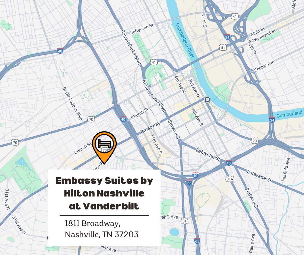 We’ve reserved a special room block for our wedding weekend at the Embassy Suites by Hilton Nashville at Vanderbilt, located right in Midtown — walking distance to great restaurants, bars, and just a quick ride to downtown.